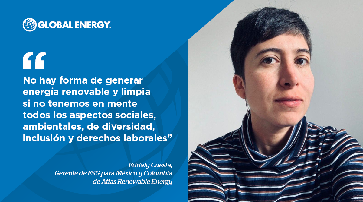 Para conocer más al respecto, Global Energy conversó con Eddaly Cuesta, Gerente de ESG (Environmental, Social y Governance, por sus siglas en inglés) para México y Colombia en Atlas Renewable Energy, quien nos habló sobre los dos proyectos en los que actualmente trabaja la compañía en el país, los diferentes factores que se analizan para poder concretarlos, así como de sus esfuerzos que lleva a cabo para aumentar la participación de las mujeres en el sector energético.