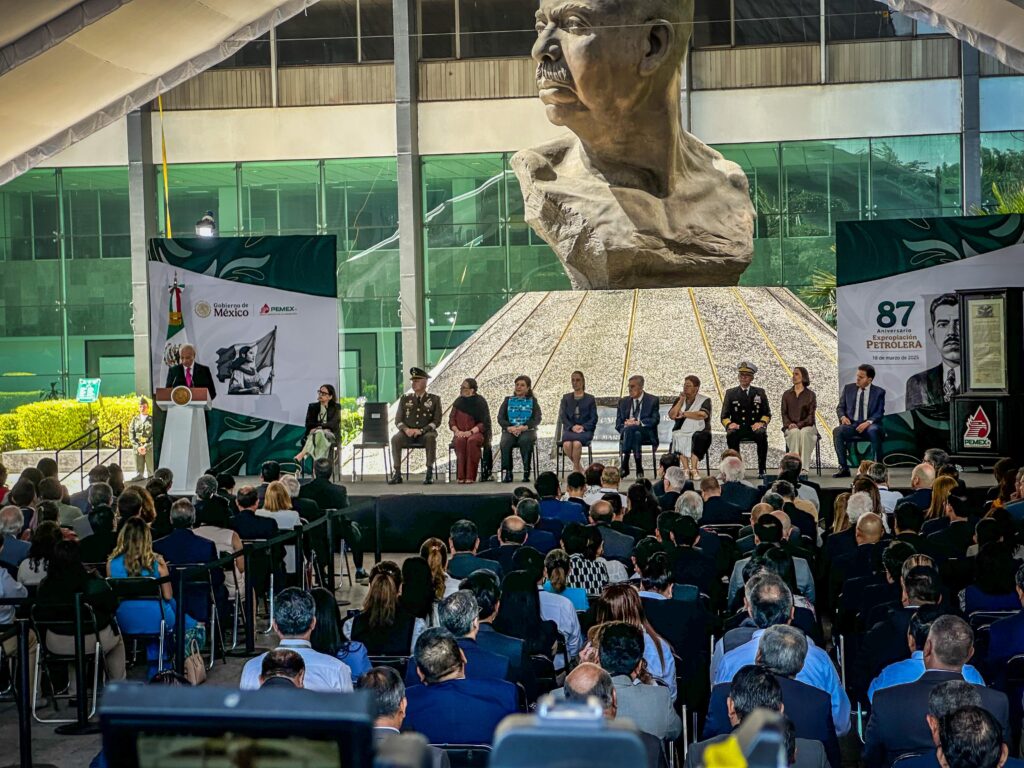 La presidenta de México, Claudia Sheinbaum, se convirtió en la primera mujer titular del Poder Ejecutivo en conmemorar el 87° aniversario de la Expropiación Petrolera, un evento histórico que tuvo lugar en 1938 bajo la presidencia de Lázaro Cárdenas del Río. La ceremonia se lleva a cabo este martes desde la Torre Pemex, marcando un momento significativo para la industria energética del país.