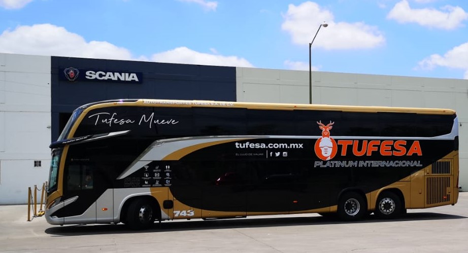 Los vehículos formarán parte del servicio Platinum Internacional DD que recorrerá México y parte de Estados Unidos; cuentan con doble piso y accesos inclusivos para personas con discapacidad; asimismo, proporcionan más espacio para los pasajeros, cuentan con aislamiento de sonido, tecnología Euro 5 para cuidar el medio ambiente y la seguridad que los chasis Scania ofrecen con el Sistema ADAS 2.0.