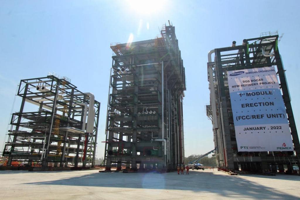 Asimismo, continúa el ensamble de módulos en el quemador de la planta combinada y se trabaja en el montaje de estructuras en los seis tambores de coque.