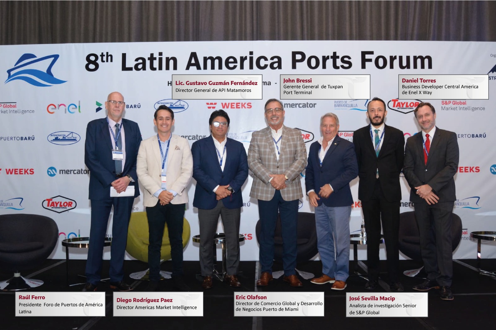 El Gobierno de Tamaulipas, a través de la Secretaría de Desarrollo Energético y la API Tamaulipas, agradece a los organizadores del 8th Latin America Ports Forum, Raúl Ferro y Jay Applewhite, por el espacio de diálogo y alianzas, pues permiten robustecer relaciones con actores empresariales, gubernamentales y comerciales como Jorge Barakat y Elvia Bustavino, Administrador y Sub –Administradora de la Autoridad Marítima de Panamá; Robert Barceló, Gerente Senior del Puerto Everglades; Antonio Domínguez, Presidente Región America Latina y el Caribe en MAERSK; Eric Olafson, Director de Comercio Global y Desarrollo de Negocios Puerto de Miami; John Bressi, Gerente General de Tuxpan Port Terminal; José Sevilla Macip, Analista de investigación Senior de S&P Global, entre muchos más.