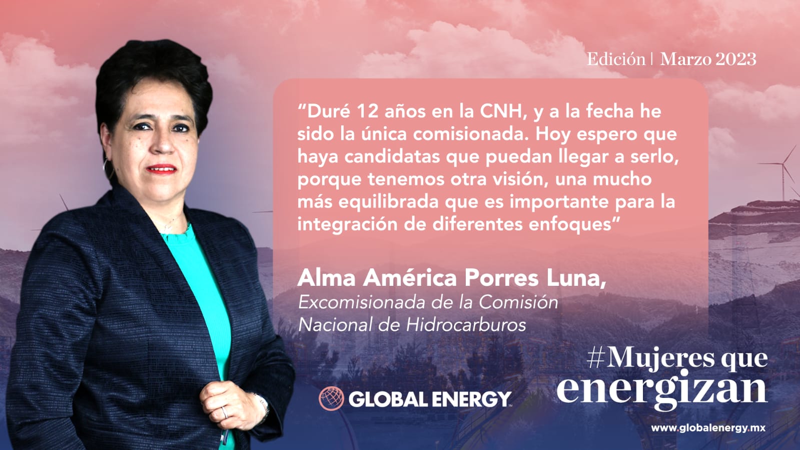 Con un balance positivo luego de 12 años en la Comisión Nacional de Hidrocarburos (CNH), la doctora Alma América Porres Luna comparte algunos de los retos que ha enfrentado en su carrera; los principales hitos que ha atravesado la industria de la exploración y producción, y en el marco de la conmemoración por el Día Internacional de la Mujer, su visión sobre la participación femenina en este sector.