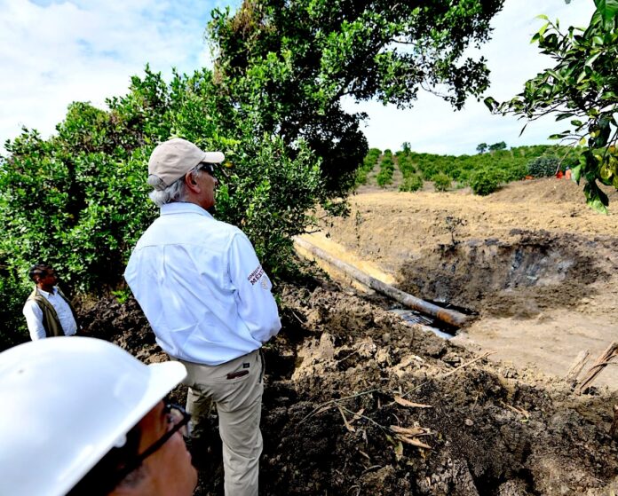 “Estamos viendo las causas por las cuales el tubo reventó en una parte y entonces empezó un derrame, que se encauzó por un arroyo pequeño, que después se fue ensanchando”, explicó el funcionario. Pemex también realiza un censo de parcelas afectadas para coordinar la indemnización correspondiente, en cumplimiento de su responsabilidad ambiental.
