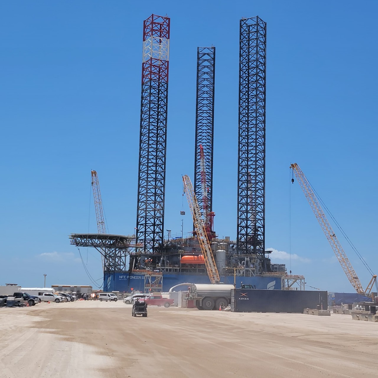 La plataforma marítima se encuentra frente a la costa de Aldama, a unos 25 kilómetros de Altamira, donde en los próximos días se estará oficiando el arribo de la primera plataforma para la operación de licuefacción de la empresa norteamericana New Fortress Energy, en conjunto con la Comisión Federal de Electricidad (CFE). Posteriormente, se espera que en los meses siguiente se carguen buques cisterna de gas licuado para su comercialización en Europa.